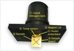 樣(yàng)品變溫 、固定部分組成 - 圓形液氮槽 - 樣(yàng)品固定板 - 溫度傳感器(qì) - 嵌入式(shì)加熱器(qì) - 磁體(tǐ)蓋 - 電纜(lǎn) | AMP磁體(tǐ)Kit俯視圖(tú) - 磁體(tǐ)移動馬(mǎ)達控制 - 圓形液氮槽 - 磁體(tǐ)蓋 - 電纜(lǎn) |